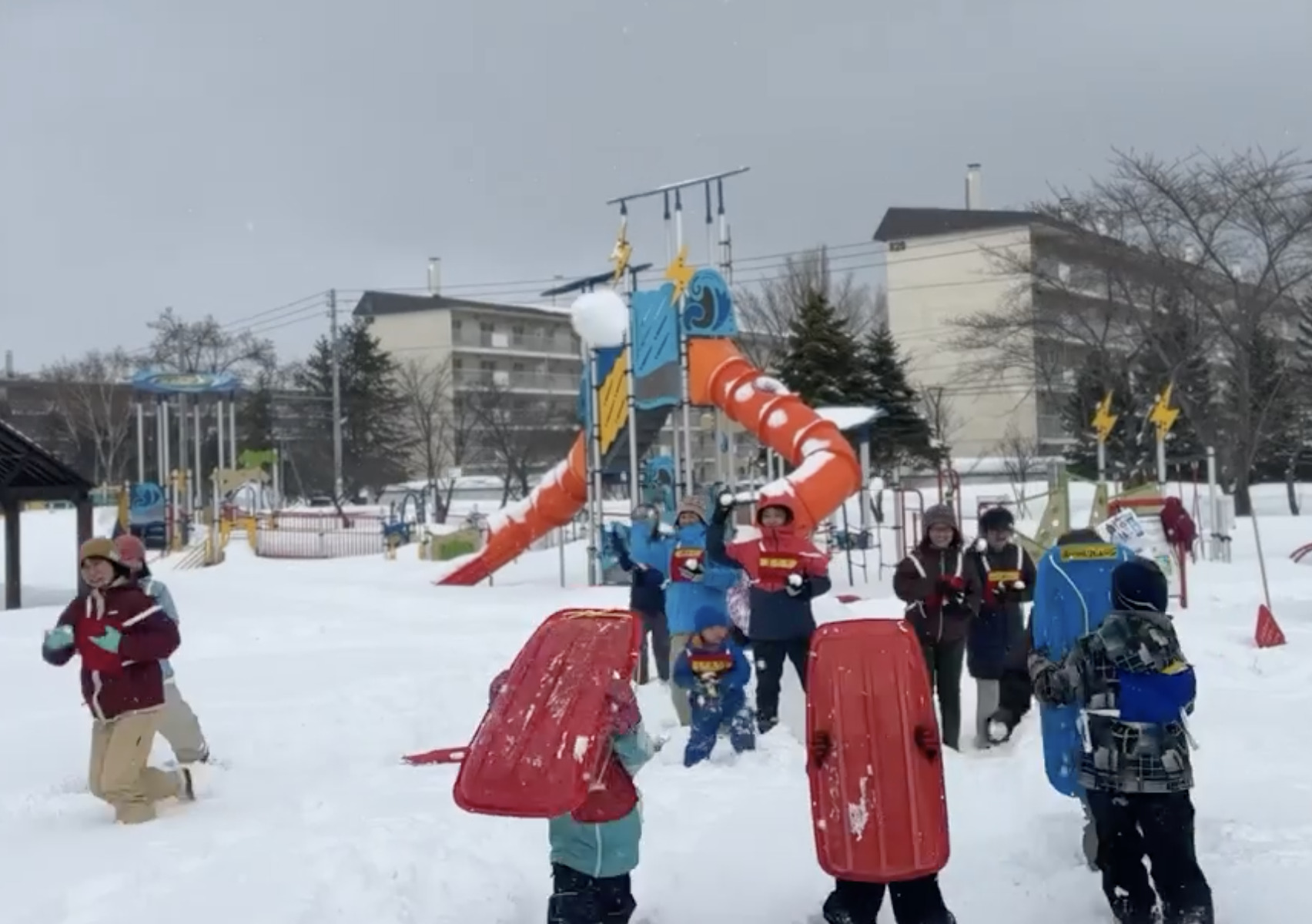 雪合戦以外にもスノーフラッグでは全速力で走ったり、そり遊びでは大人も連結してすごいスピードにもたじろがず楽しんでいる様子が最高でした!!