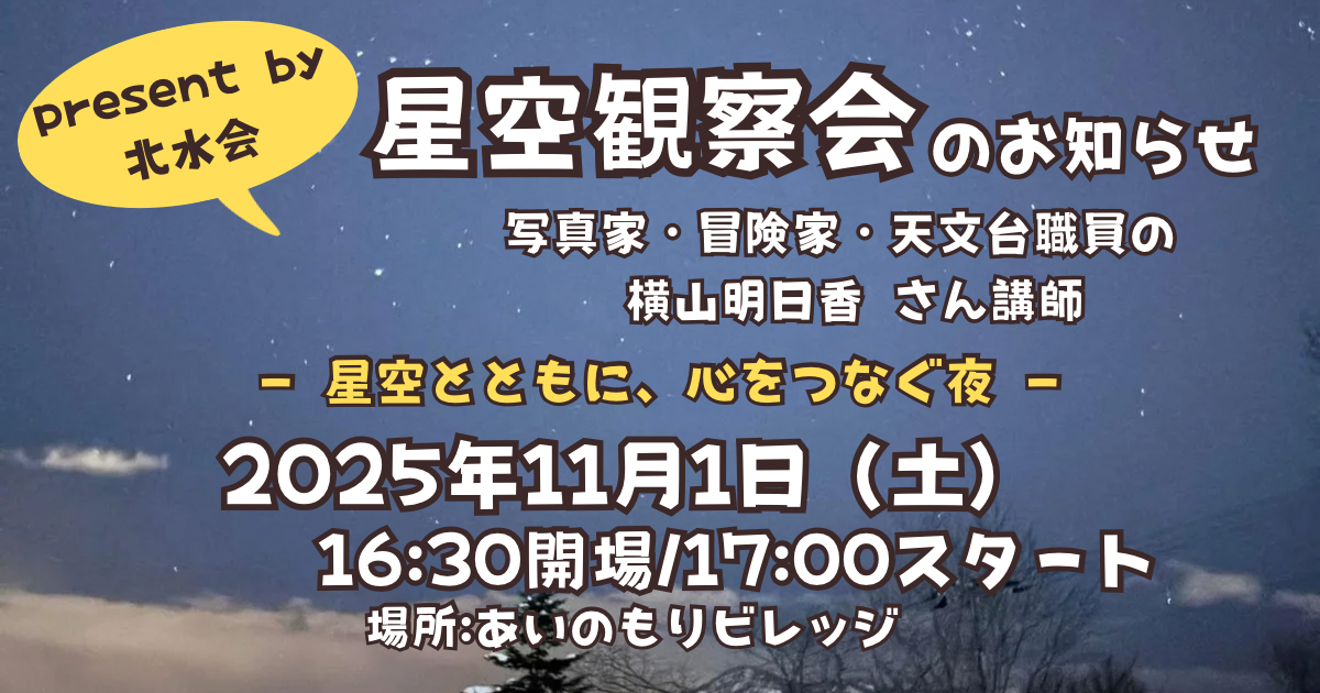 あいのもりビレッジで星空観察会を開催します。