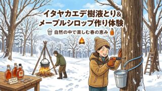 \ プライベートな森で味わう /🌿 イタヤカエデ樹液とり & メープルシロップ作り体験 🌿──────────────────朝の森。真っ白な雪の上に光が反射し、イタヤカエデの幹がやわらかく輝いています。幹に小さな穴をあけると、透明なしずく...
